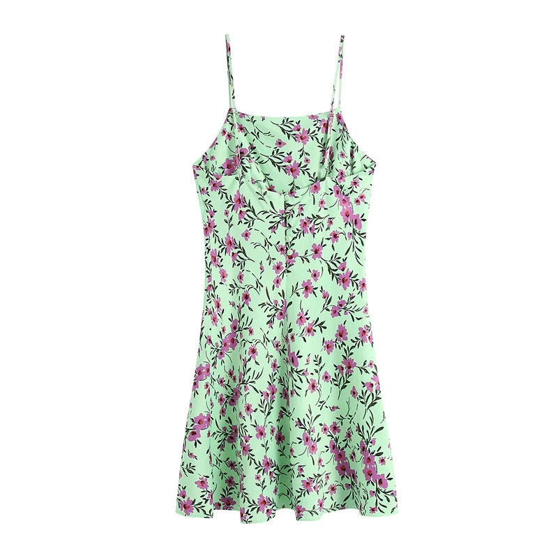 Купить Женское атласное платье на тонких бретельках винтажное шелковое с цветочным
