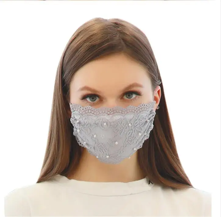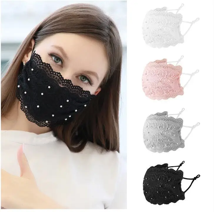 Женская кружевная маска с жемчужным принтом дышащая Регулируемая Маска для лица - купить