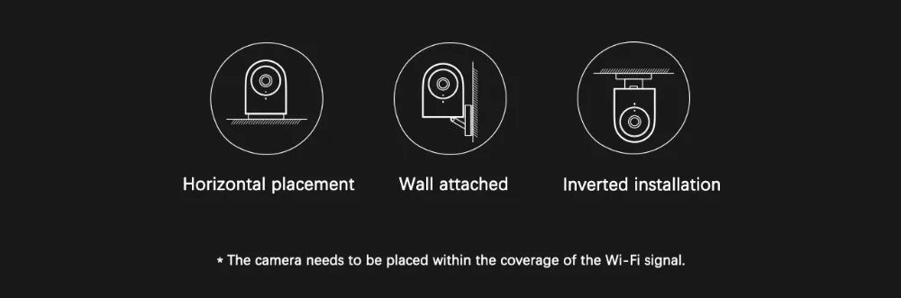 A variety of installation methods, installed in the place you want to installThe base has a built-in powerful magnet that can be attached to an iron-containing object. The package comes with a wall mount installation kit that supports a variety of installation methods such as flat placement, wall attachment, and flip mounting.* The camera needs to be placed within the coverage of the Wi-Fi signal.