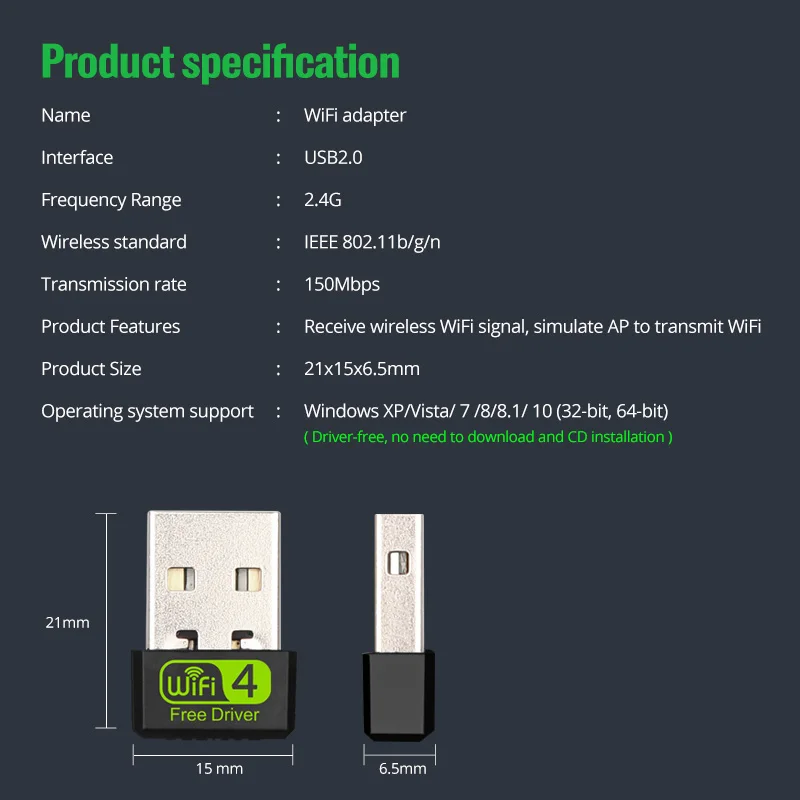 Отзывы о FONKEN USB Wifi адаптер для ПК 802.11n 2 4G 150 м Беспроводной Lan ключ доступа локальной сети