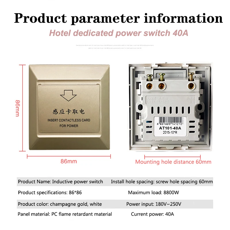 Чип: 125 кГц T5577Рабочая частота: высокочастотная/низкочастотная картаРабочее напряжение: 50/60 Гц 160-260VAC (110 В, 12 В, другие электрические(Пресс может быть настроен)Максимальный ток нагрузки: 40AМаксимальная мощность нагрузки: 8800 ВтСтатическая Рабочая мощность: 1 ВтЗадержка отключения питания: 10-20 секундНерабочее состояние: светодиодный светильник красного или синего цветаУслуги жизни: в тех случаях, когда контакты реле находятся на 220V максимальной допускаемой нагрузке, Услуги жизнь-это больше, чем 100000 разРабочая температура:-20 ℃-60 ℃Рабочая влажность: 50 ℃ 10-95% RHРазмеры: w86мм * h86мм * d40ммМатериал корпуса: огнестойкий ПоликарбонатЦвет корпуса: другие цвета могут быть настроены в соответствии с потребностями клиента