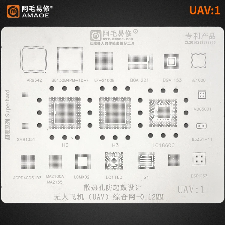 Купить Трафарет для реболлинга BGA чипов дрона UAV1/UAV2/H3/H6 / LC1860C /BGA178 | Мобильные телефоны и