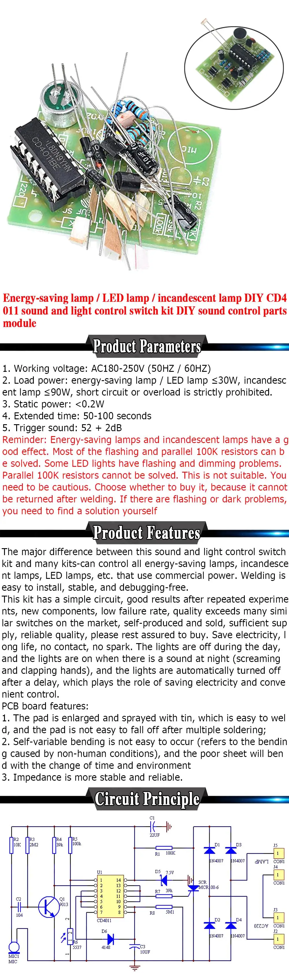 Энергосберегающая лампа светодиодный светильник накаливания CD4011 звук и - купить