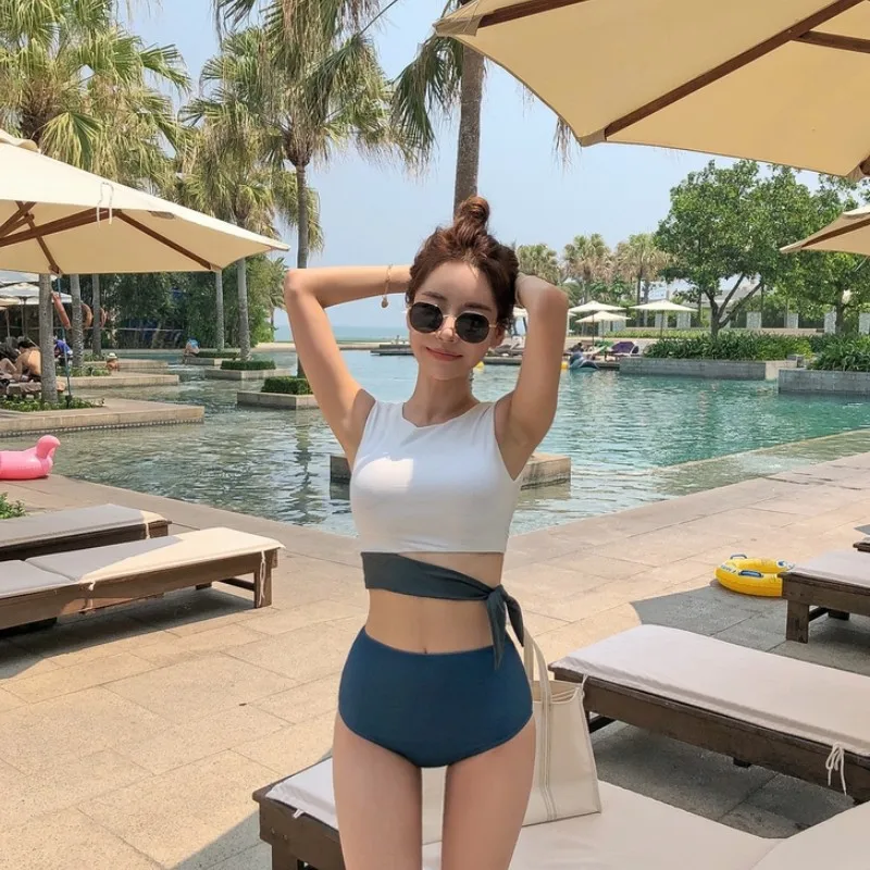 Отзывы о Бандажный купальник в Корейском стиле женский с мягкими чашечками однотонный