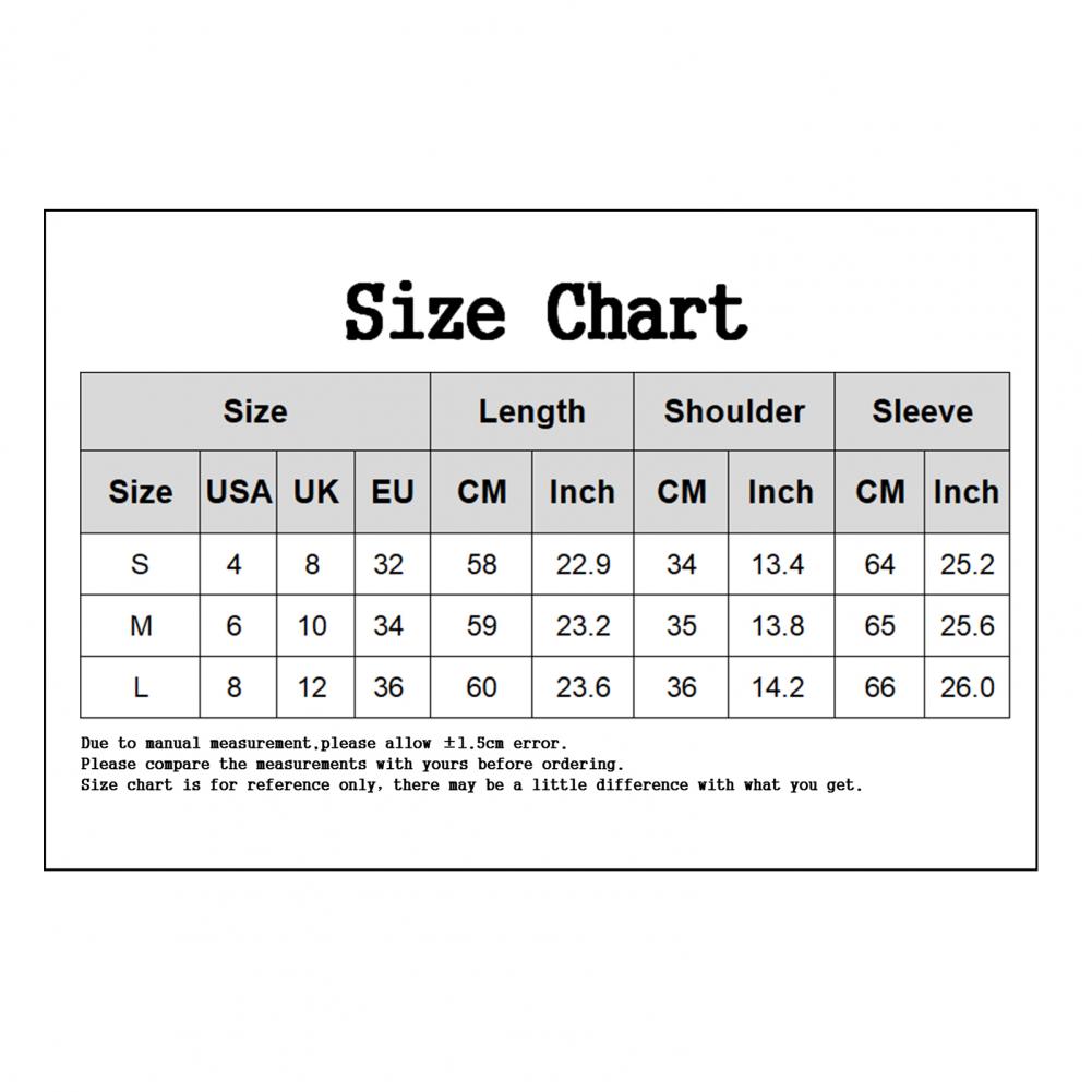 [Наш Размер S] Ширина плеч: 34 см/13,4 дюйма, длина рукава: 64 см/25,2 дюйма, длина: 58 см/22,8 дюйма (прибл.)