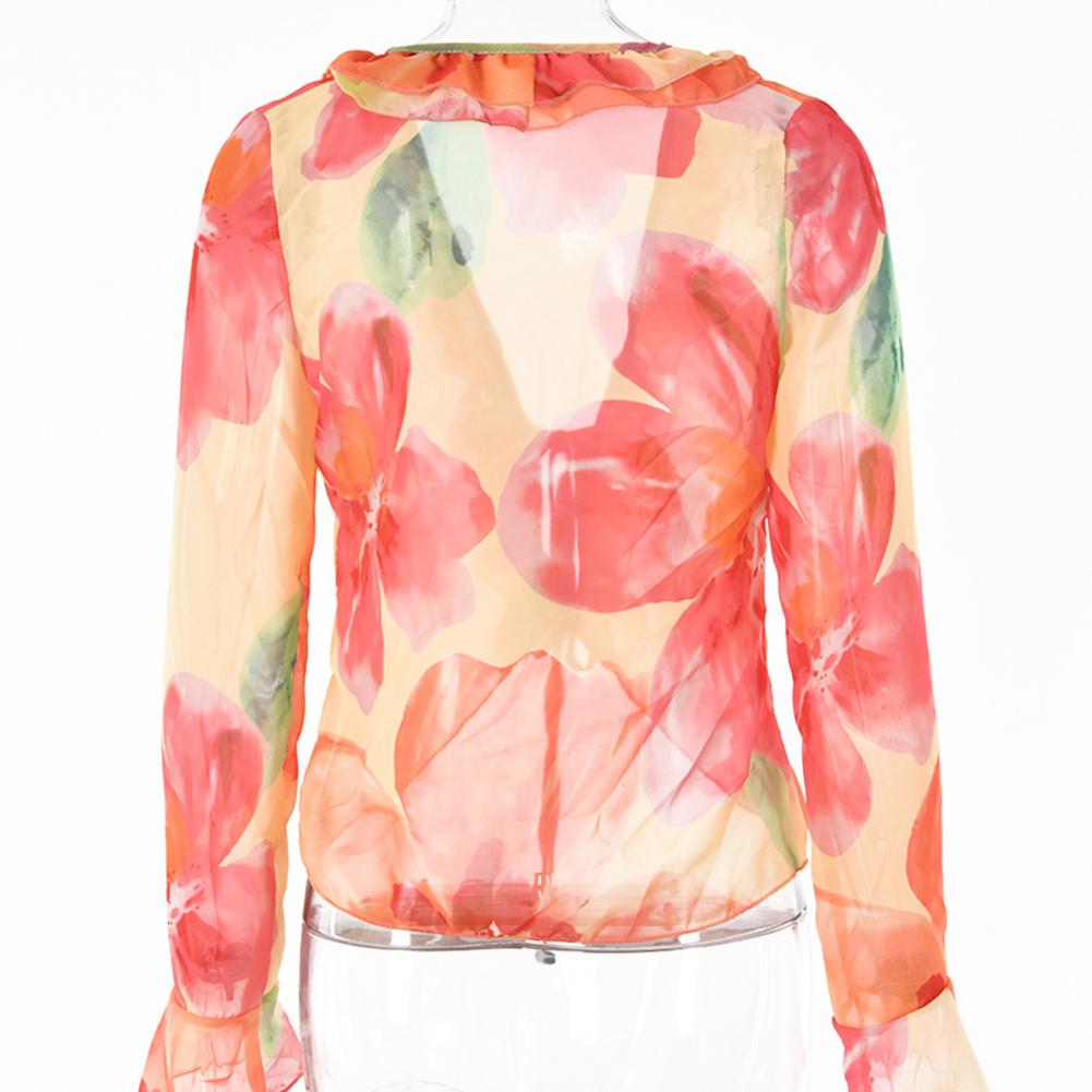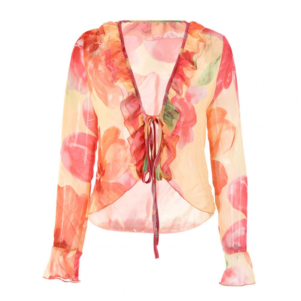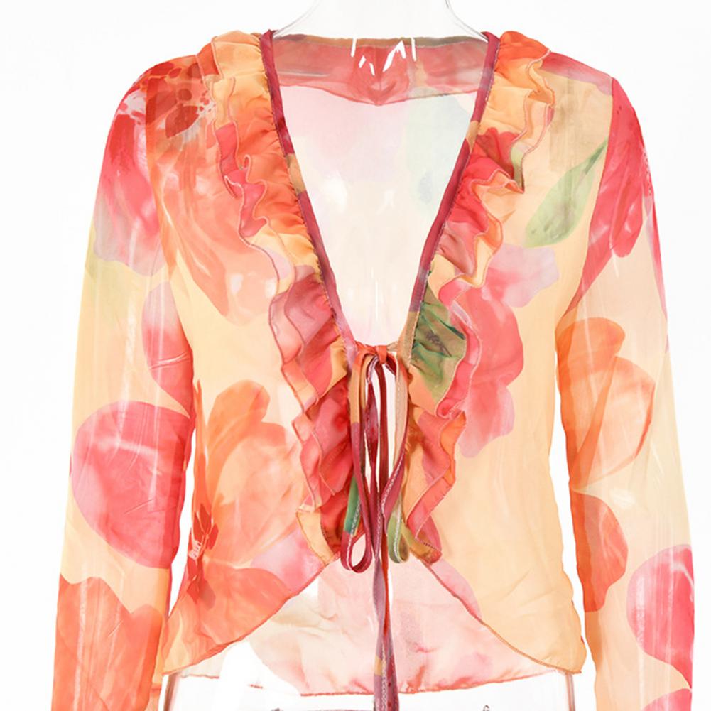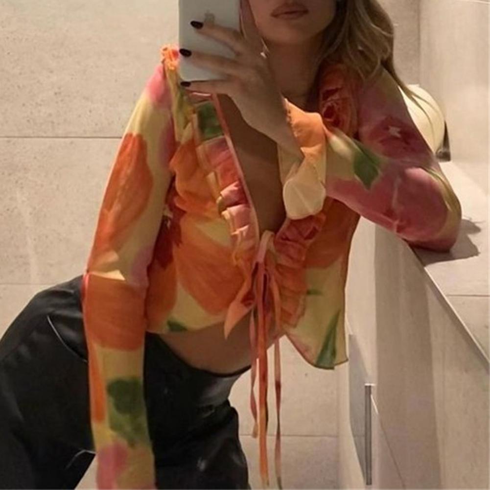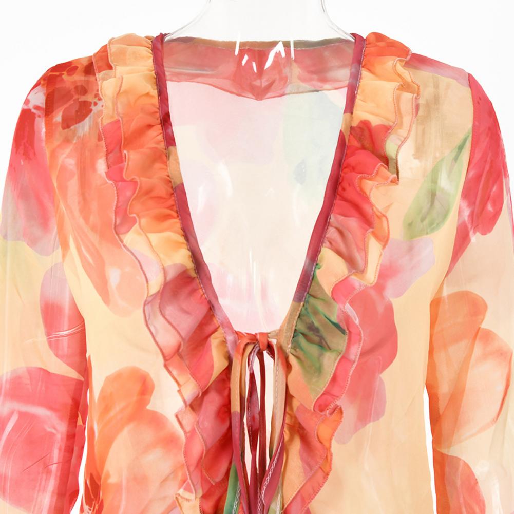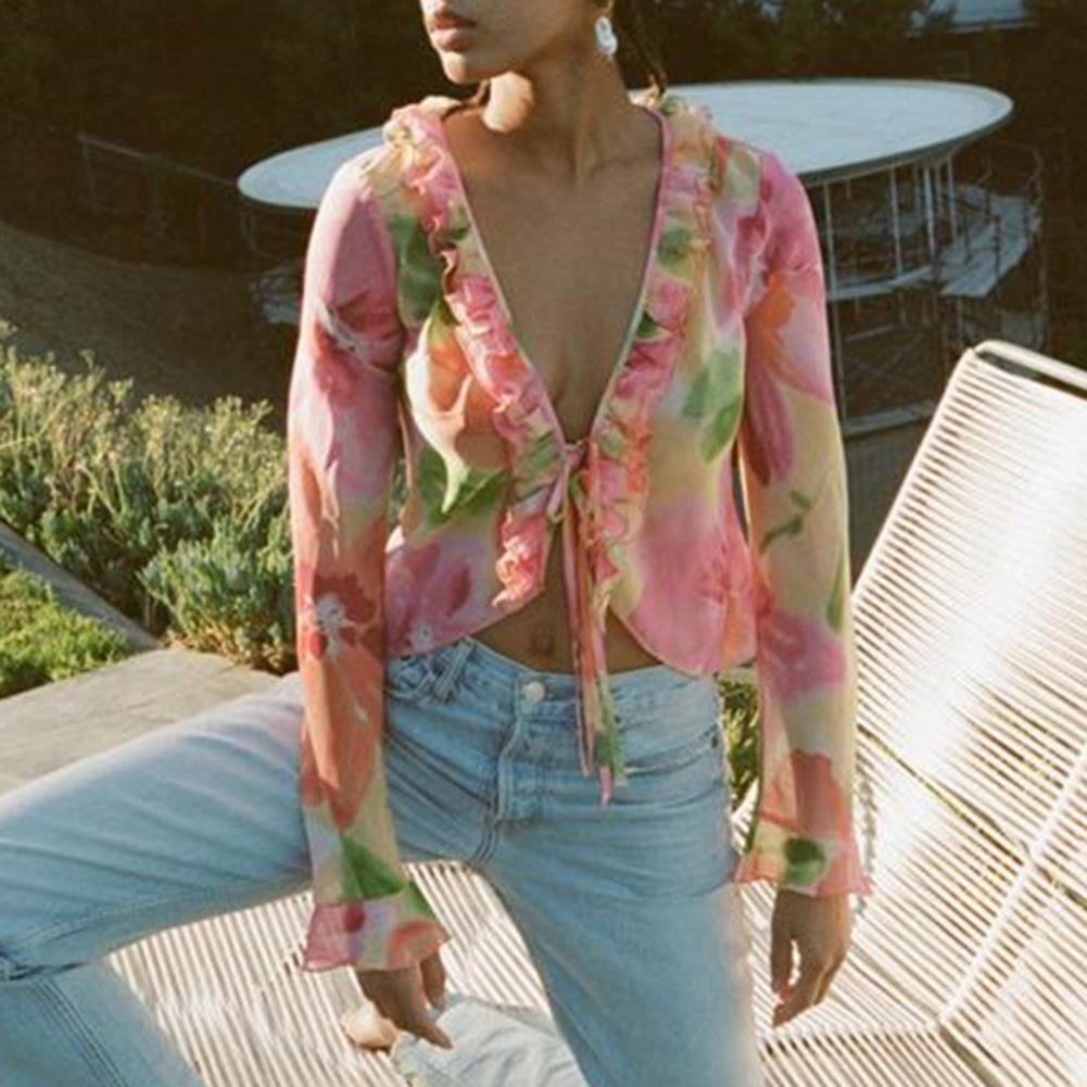 Отзывы о Модная богемная блузка с рюшами просвечивающее кружево v образным вырезом топы