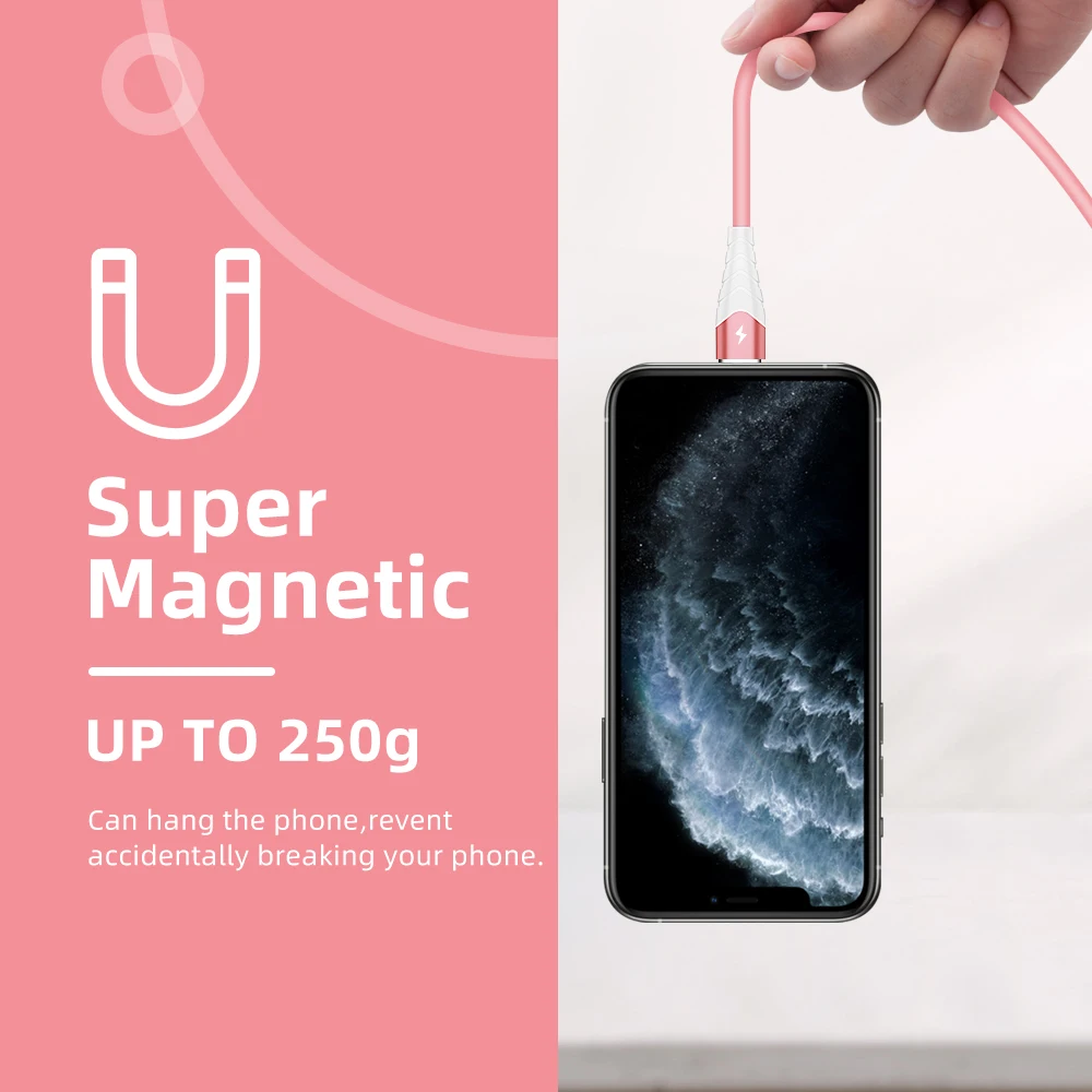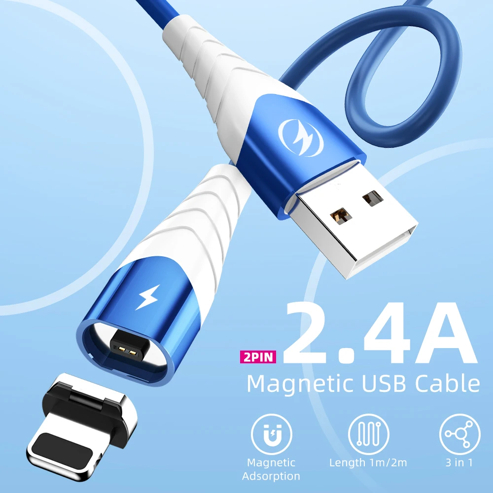 Силиконовый Магнитный зарядный кабель, удобный и мягкий usb кабель для зарядки сотового телефона планшета. 3 в 1 usb кабель, 1 кабель адаптируется к 3 различным типам магнитных usb-подсказок (micro usb tips/usb c tips/для ios устройств tips). Поддержка быстрой зарядки макс. 2,4 A (* по сравнению с традиционным обычным зарядным шнуром; Требуется поддержка устройства и зарядного устройства.) Улучшенная конструкция конструкции, более стабильное магнитное соединение всасывания. Поддержка работы с одной рукой, более удобная и благоприятная для безопасного вождения. Белый/синий/розовый многоцветный опционально; 1 м 2 м Длина usb кабель для различных сценариев использования. Магнитные всасывающие наконечники также могут использоваться как Пылезащитная вилка. Избегайте посторонних тел в зарядном порту телефона. Подходит для большинства смартфонов (пожалуйста, выберите подходящие магнитные всасывающие головки). Рекомендуется приобрести несколько магнитных присосок и одновременно присваивать их нескольким устройствам.Разъем A : USB A