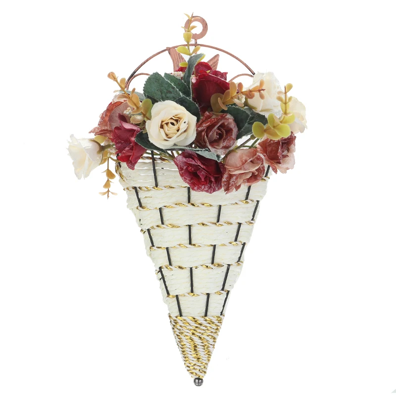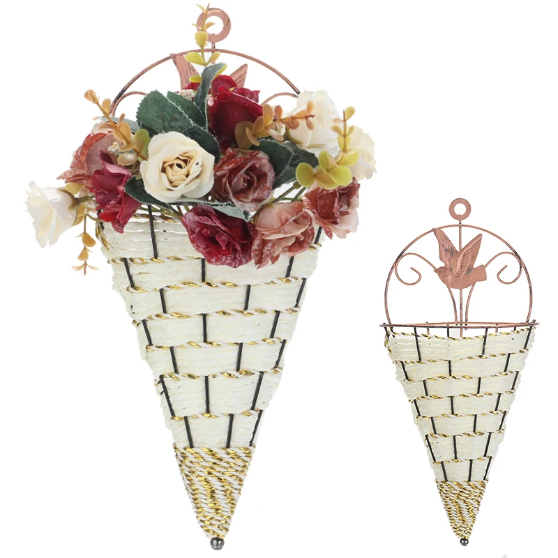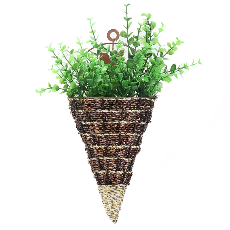 Купить Белый/коричневый натуральная плетеная корзина для цветов настенный горшок