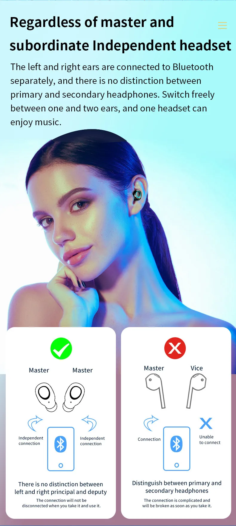 1. Обновленный светодиодный дисплей питания:Интуитивно понятный для того чтобы знать уровень электричества oCharging кабина и гарнитура с первого взгляда2. Обновление чипа Bluetooth: обновление чипа Bluetooth 5,0, выберите автоматическую загрузку и соответствие3. Обновление операционной функции: одно касание для переключения Предыдущая/следующая песня и регулировка громкости wake up assistant