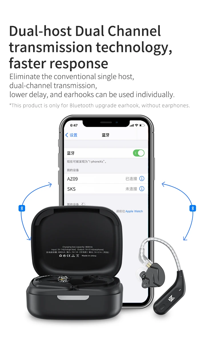 KZ AZ09 проводные наушники обновленный кабель 5,2 Bluetooth-совместимые наушники HIFI беспроводной ушной крючок