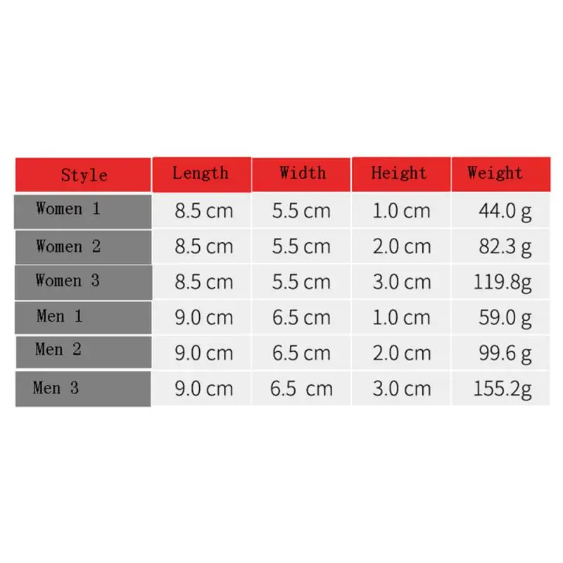 Размеры: Для мужчин: 9*6,5*1 см/9*6,5*2 см/9*6,5*3 см (Д * Ш * В)