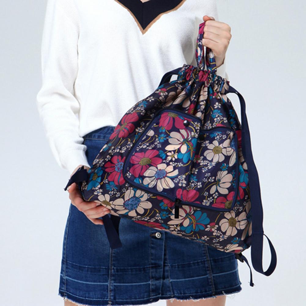 Складной нейлоновый рюкзак с цветочным принтом и шнурком, водонепроницаемая вместительная сумка для покупок