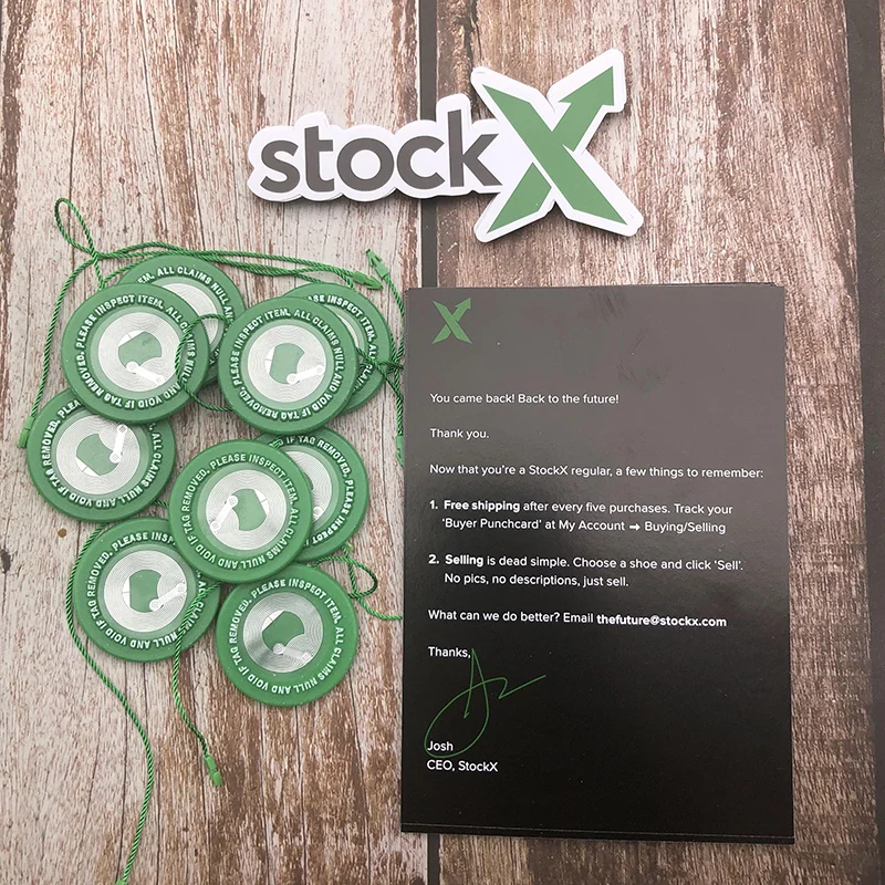 Купить 1 Набор в партии индукция чипа 2020 бирка StockX зеленая круглая наклейки Rcode