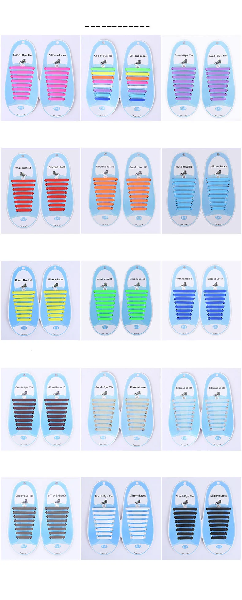 Эластичные шнурки для обуви, 16 шт., тянущиеся силиконовые шнурки, не требующие завязывания, 13 цветов, подходят для мужчин и женщин