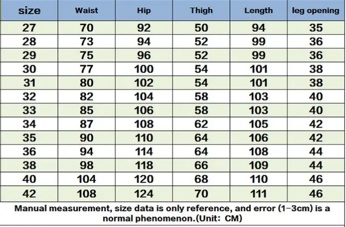 L подходит для талии 32-33 дюймов, длина брюк 102 см, бедра 60 см,