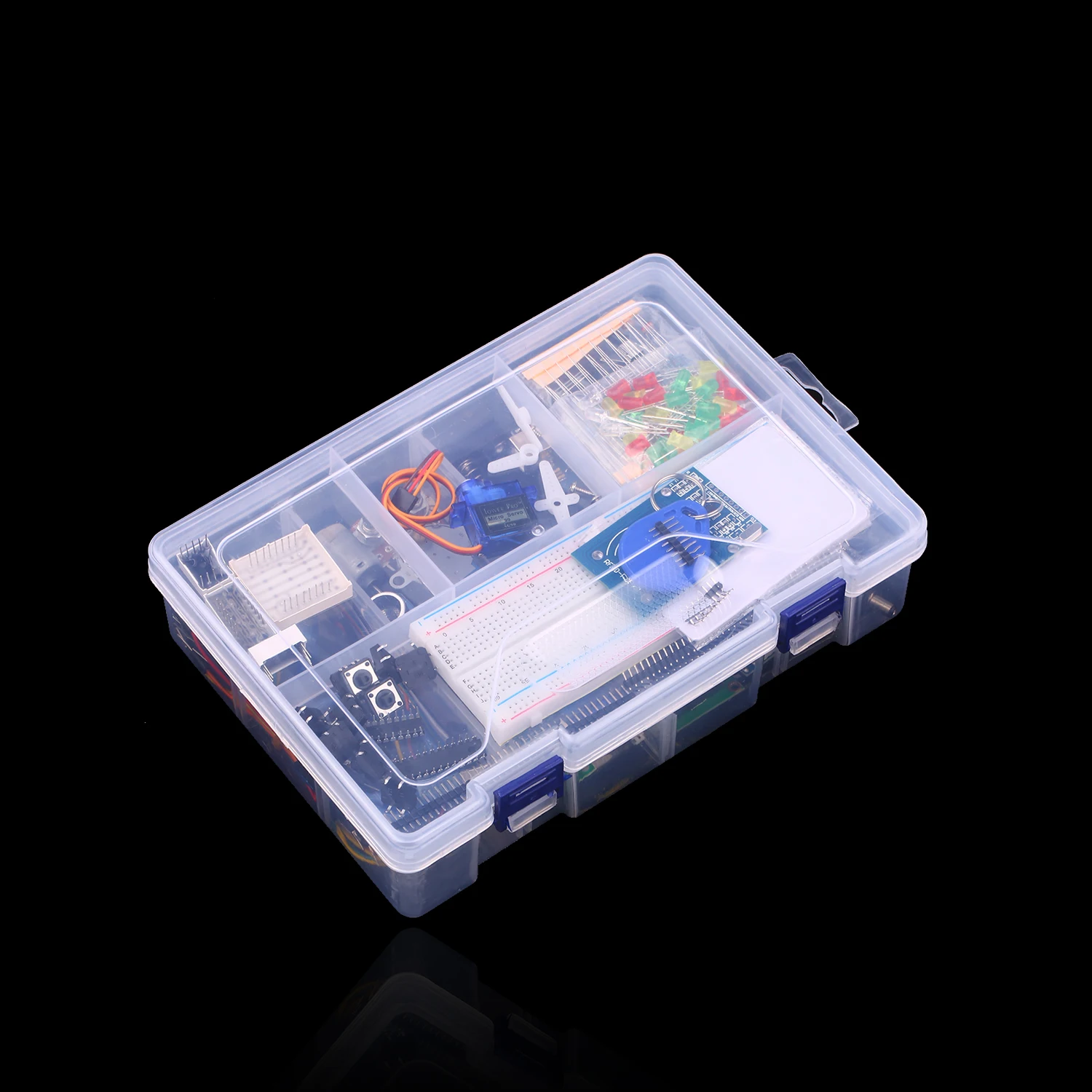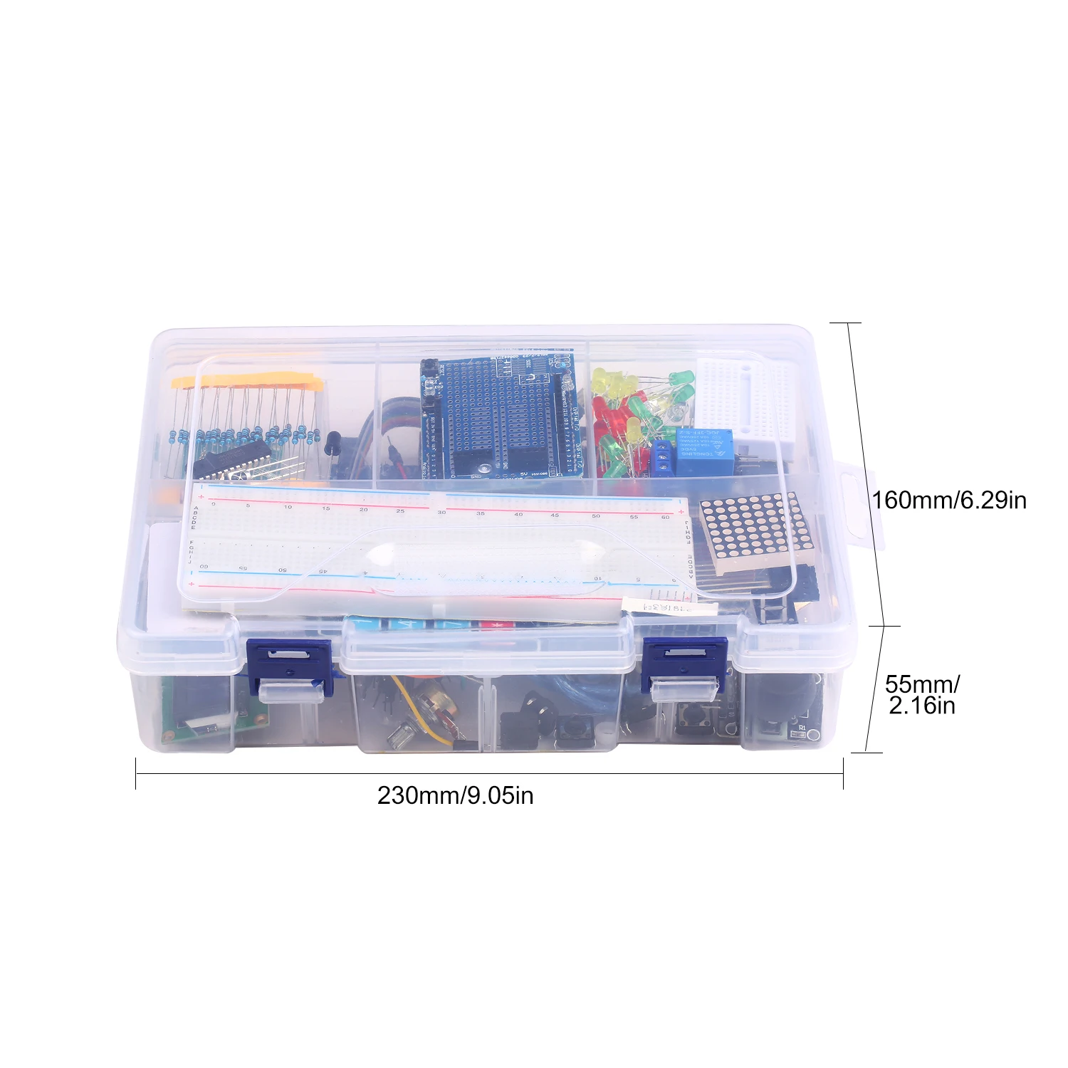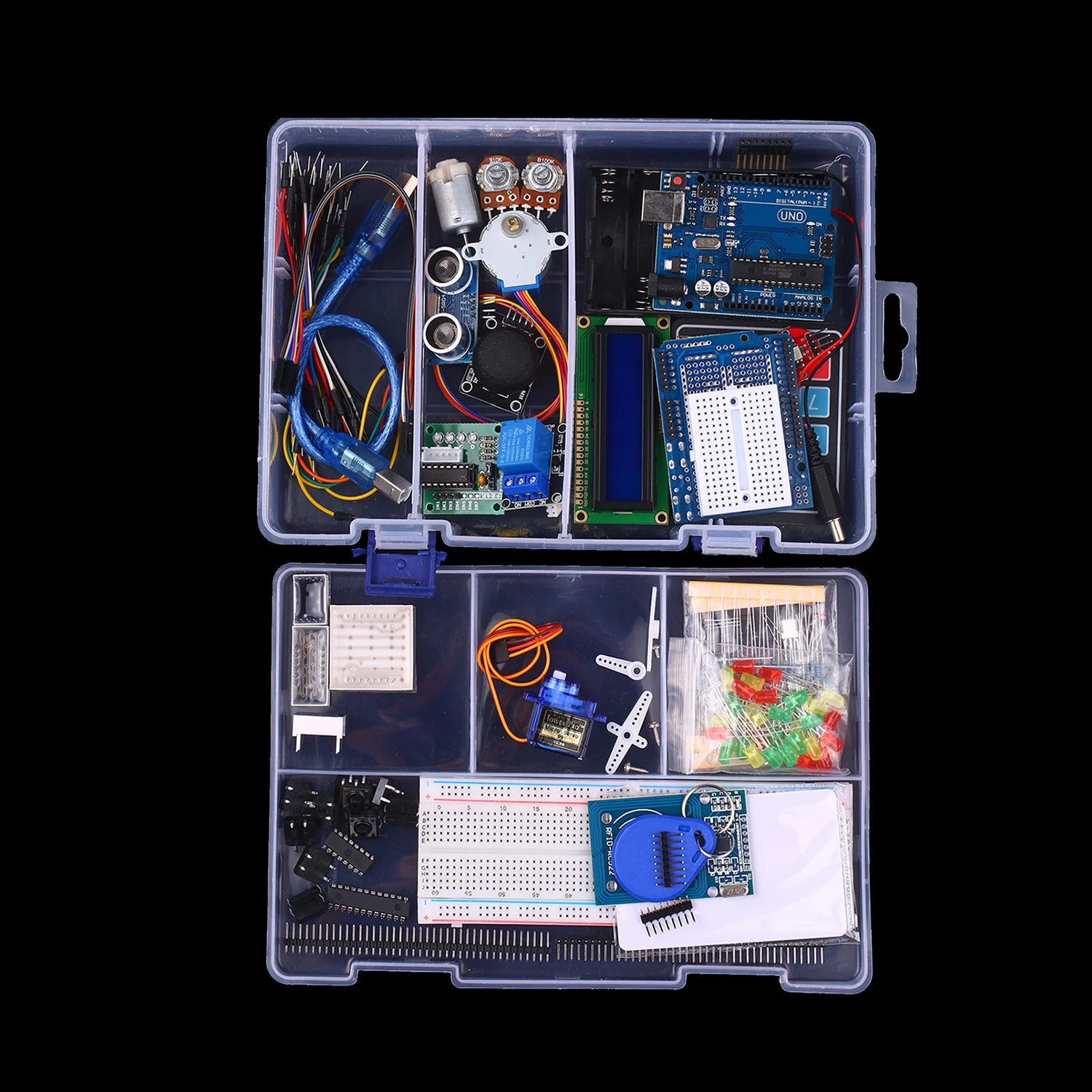 Содержит все, что вам нужно-- Внутри комплекта имеется большое количество предметов, таких как перемычки, макетная плата 830 отверстий, светодиодный фонарь, шаговые двигатели и т. д., что отвечает требованиям пользователей для различных проектов/экспериментов.