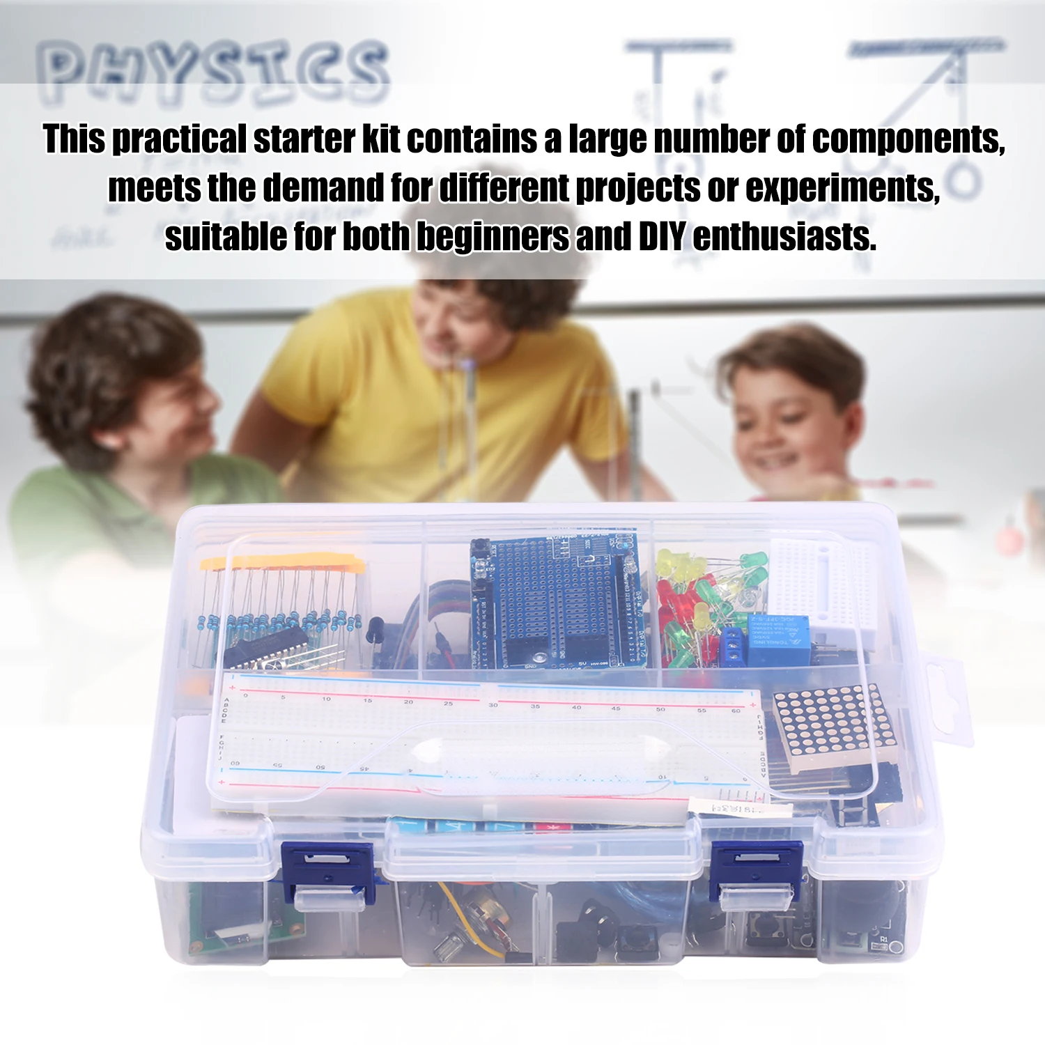 Базовый стартовый набор-- Это очень практичный, простой в использовании и надежный в эксплуатации стартовый набор, который предназначен для начинающих быстро и легко начать путь обучения электронике, подходит как для начинающих, так и для любителей DIY.
