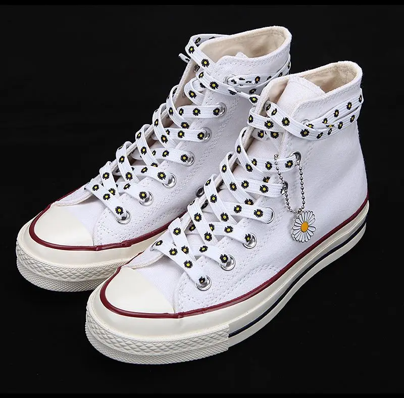 Новые плоские шнурки Sakura с маленькими маргаритками, шнурки для обуви, высокие холщовые шнурки для кроссовок AF1 Ботинки со шнурками, шнурки 100/120/140/160 см