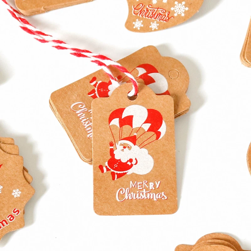 Name50sets Санта Клаус Снеговик крафт-бумага, ярлыки для подарков Счастливого Рождества бумажные карты с веревкой