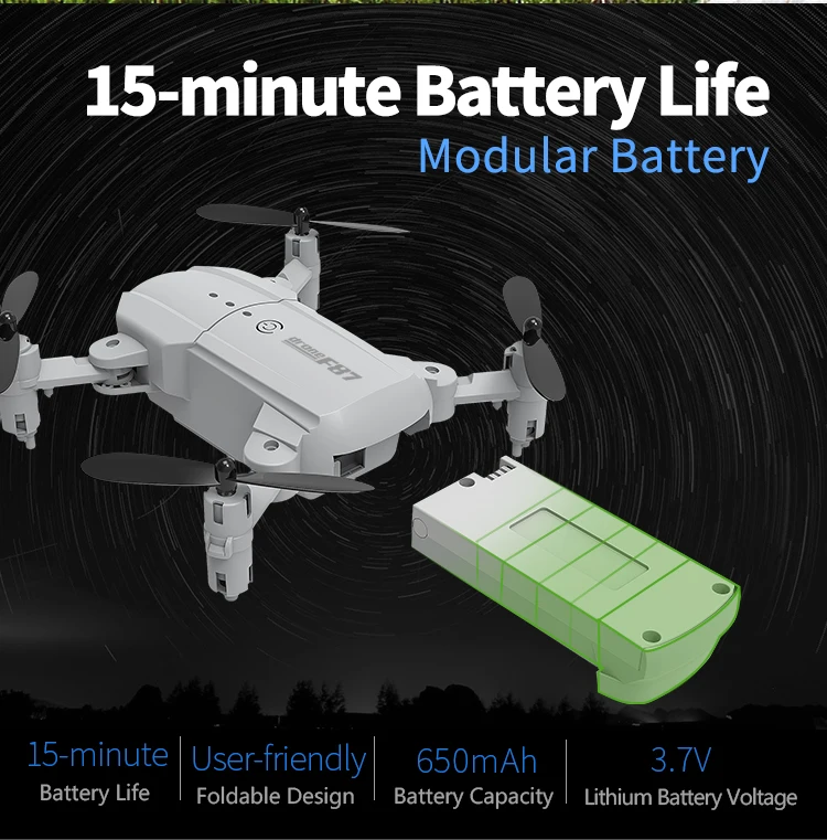 Пункт NO. : F87 Материал: АБС-пластик и электронные компоненты Цвет: черный/белый Версия: с камерой 720, с камерой 4K (опционально) Гироскоп: 6-axis Частота: 2,4G Канал: 4CH Двигатель: 716 щеточный Бессердечный двигатель Батарея: 3,7 в 650 мАч Lipo батарея (входит в комплект) Мощность передатчика: 2 аккумулятора AAA (не входят в комплект) Режим передатчика: режим 2 (левая рука дроссельной заслонки) Время полета: около 15 минут Время зарядки: 90 минут Дистанция RC: 80-100 м Расстояние FPV: 20-30 м Угол обзора камеры: фиксируется на 45 ° 720P версия видео разрешение 720P:1280*720P Разрешение фото 720P:1280*720P вид вниз Камера: 1280*720p 4K версия видео разрешение 4K:2560*1440 Разрешение фото 4K: 4096*3072P вид вниз Камера: 2560*1440