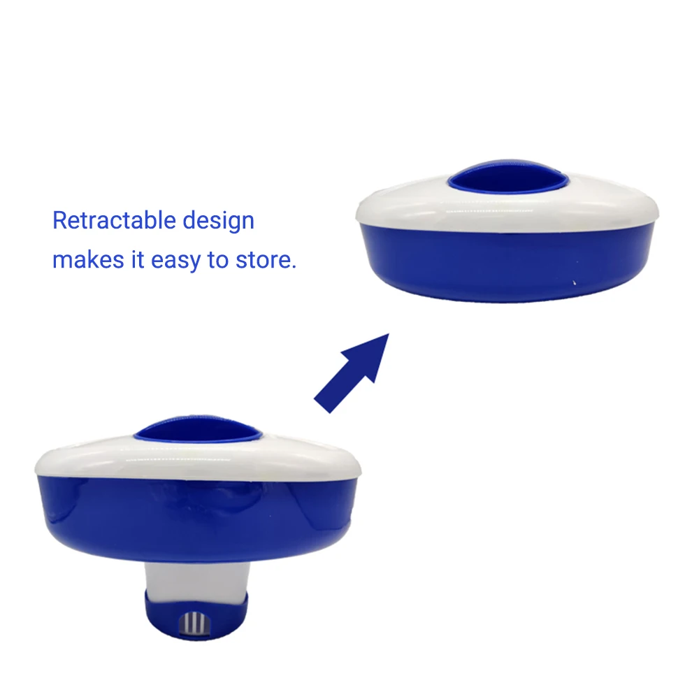 Может вмещать до 3 дюймовых таблеток брома или хлора. Выдвижная конструкция позволяет легко хранить.