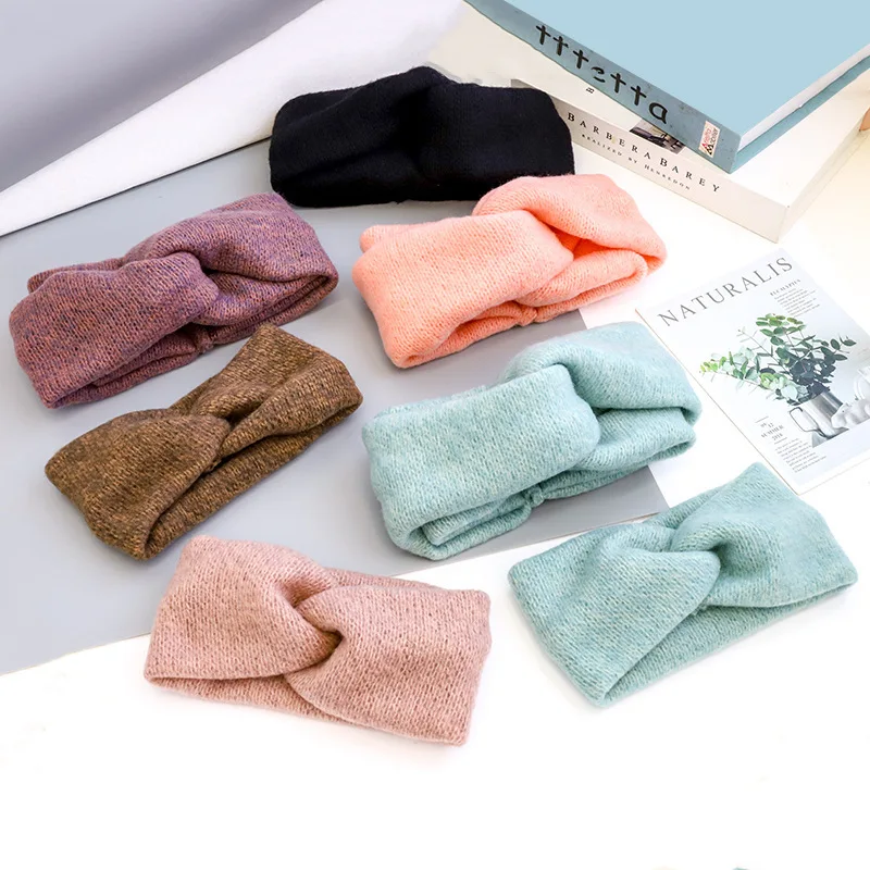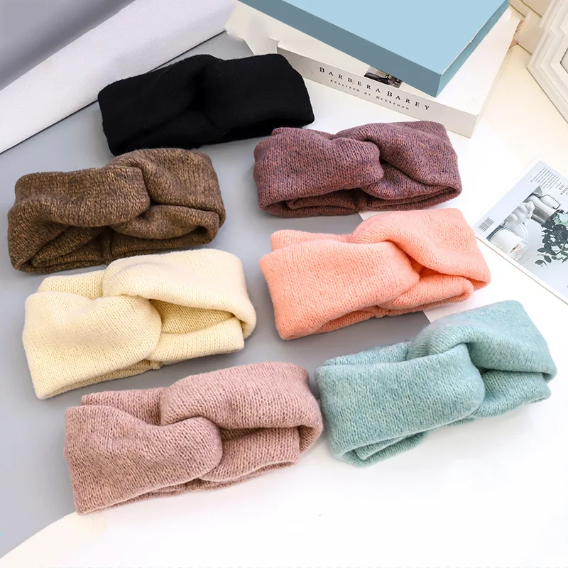 Купить Новая мягкая вязаная женская повязка однотонная эластичная изогнутая ободок для волос аксессуары для волос теплые ободки на.