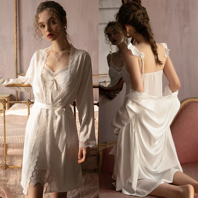 2 шт. Женская атласная ночная рубашка с кружевом - купить