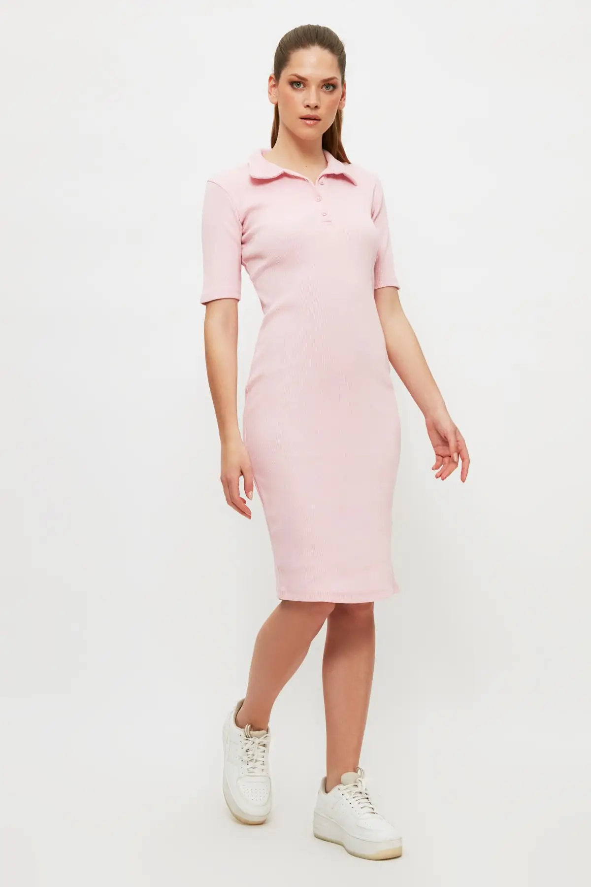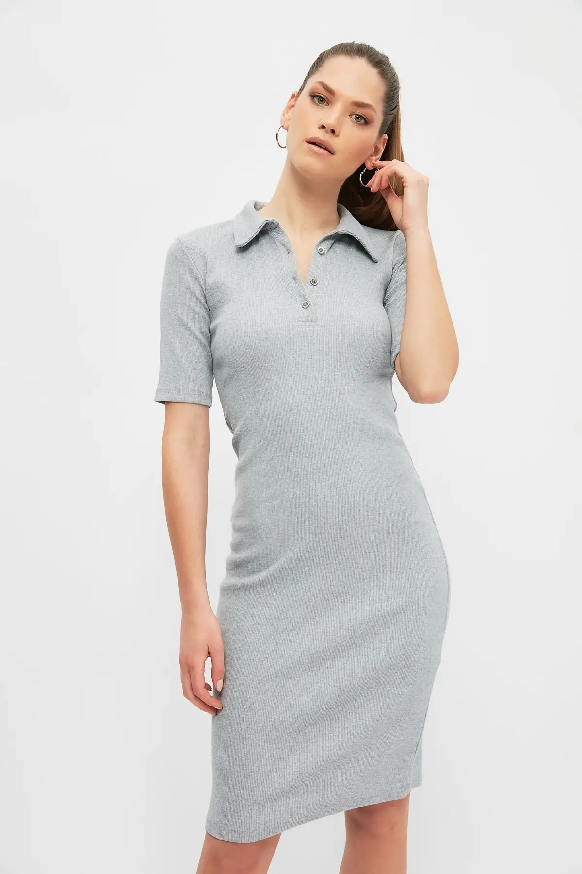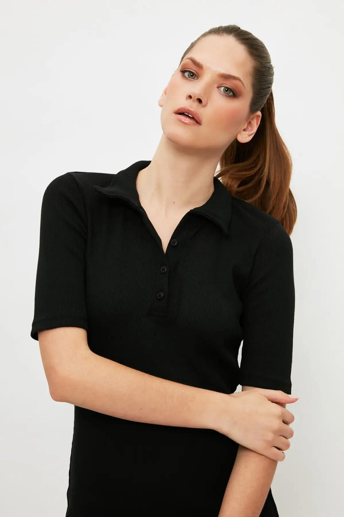 Отзывы о Платье-туника Trendyol с воротником-поло и рельефной вязкой в стиле две тысячи двадцать один модель TWOSS21EL4119