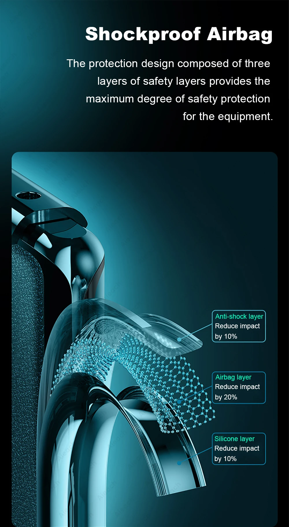 При падении противокапельная подушка безопасности снимет ударную силу и минимизирует повреждение оборудования.