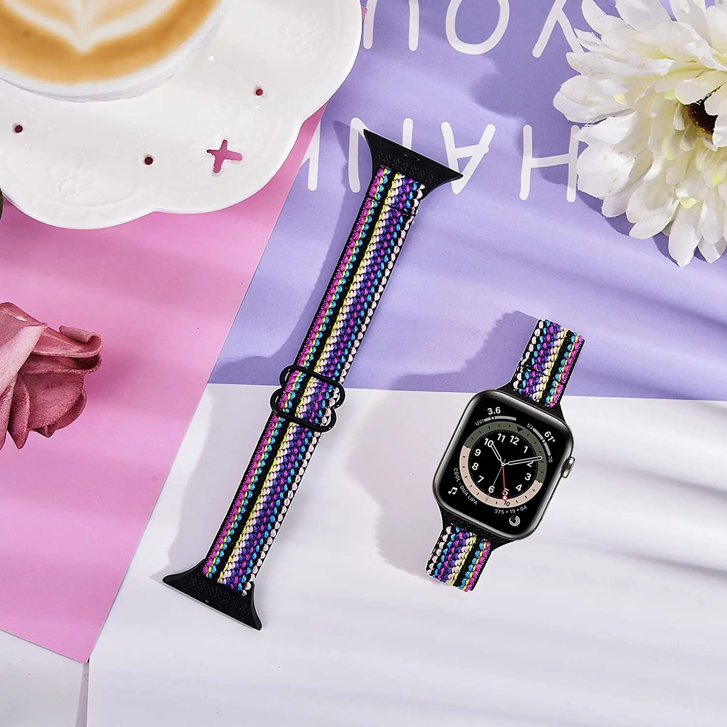 Для Apple Watch band series 6 5 4 3 2 1 se: Наша эластичная плетеная лента поставляется с регулируемой пряжкой, ремешок имеет сильную супер эластичную, удобную на ощупь на вашем запястье.