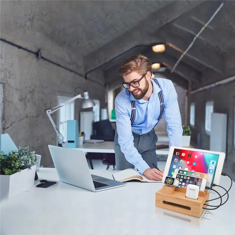 Отзывы о Бамбуковый зарядный органайзер Шнур для iPhone iwatch Airpods настольная деревянная