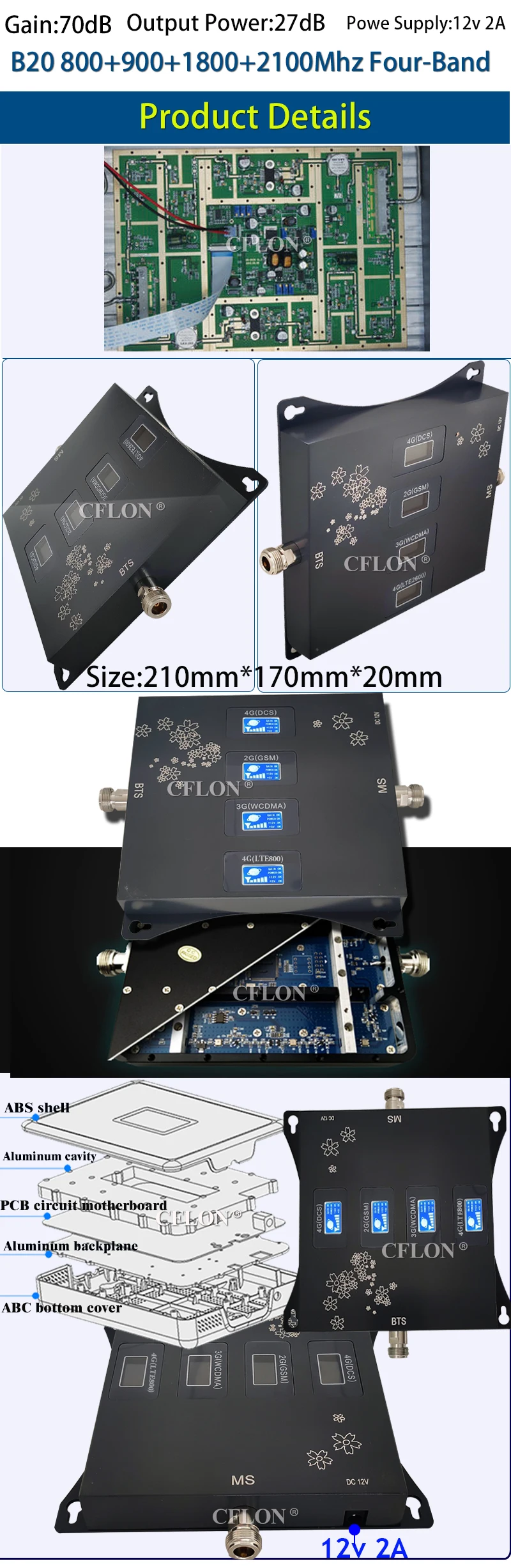 Автомобильный ретранслятор B20 800/900/1800 МГц четырехдиапазонный сотовый усилитель GSM в автомобиле LTE B20 2100 GSM900 DCS1800 UMTS2100Mhz 2G 3G 4G усилитель сигнала мобильного телефона