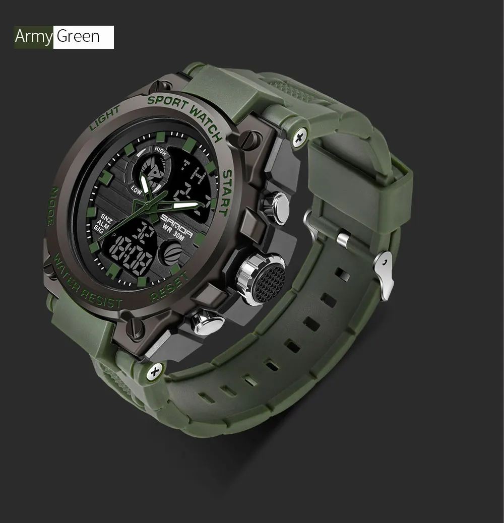 SANDA наружные часы Мужские Модные Военные Спортивные Наручные Часы светодиодный светильник противоударные мужские наручные часы Оригинальные Водонепроницаемые часы 739