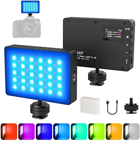 ? [Светодиодный упаковка на камере светильник] 1 * FL-30 RGB светодиодный видео светильник, 1 * Силиконовый смягчающий диффузор, 1 * типа C USB кабель для зарядки, 1*1/4 дюймов (около 0,6 см) винт для холодной обуви 1 руководство пользователя. FLASHOOT предоставляет один год RGB видео светильник Замена обслуживания. Решение в течение 24 часов.