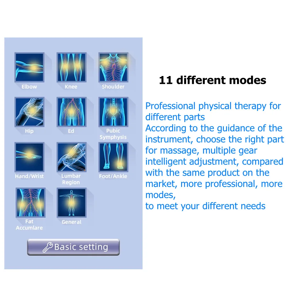 1. Терапевтический аппарат Shock wave pain-это физический механизм, проходящий через Среднюю (воздушную или газовую) Проводимость механического волнового импульсного давления, производимый пневматическими импульсными звуковыми волнами в точную баллистическую ударную волну, движение и позиционирование зонда через терапию, может произойти боль от широкого спектра тканей человека, имеет хороший эффект лечения. 2. Ударная Волна может изменить химическую среду места повреждения, что делает ткани производят и отпускают химикаты, предотвращающие боль. Между тем, ударная волна может разрушить мембрану болевого рецептора, подавить производство и распространение болевых сигналов. Кроме того, ударная волна вызывает выработку эндорфина, уменьшая чувствительность места повреждения к боли. 3. Увеличение проницаемости клеточной стенки, стимуляция микроциркуляции (крови, лимфы), высвобождение вещества P, уменьшение немиелиновых нервов, высвобождение оксида азота (вазодиляция, увеличение метаболизма клеток, неоангогенез, противовоспалительный эффект), стимуляция факторов роста (неогенез сосудов, костей, коллагена) и стимуляция стволовых клеток. 4. Облегчение боли и лечение подошвенного фасциита, сухожилия Ахилла, воспаления сухожилия плечевого сустава и кальцификации, боли в паху, эпикондилита. 5. Больные могут чувствовать первые эффекты непосредственно после лечения, облегчение боли/уменьшение после нескольких сеансов лечения, хорошее соответствие лечения