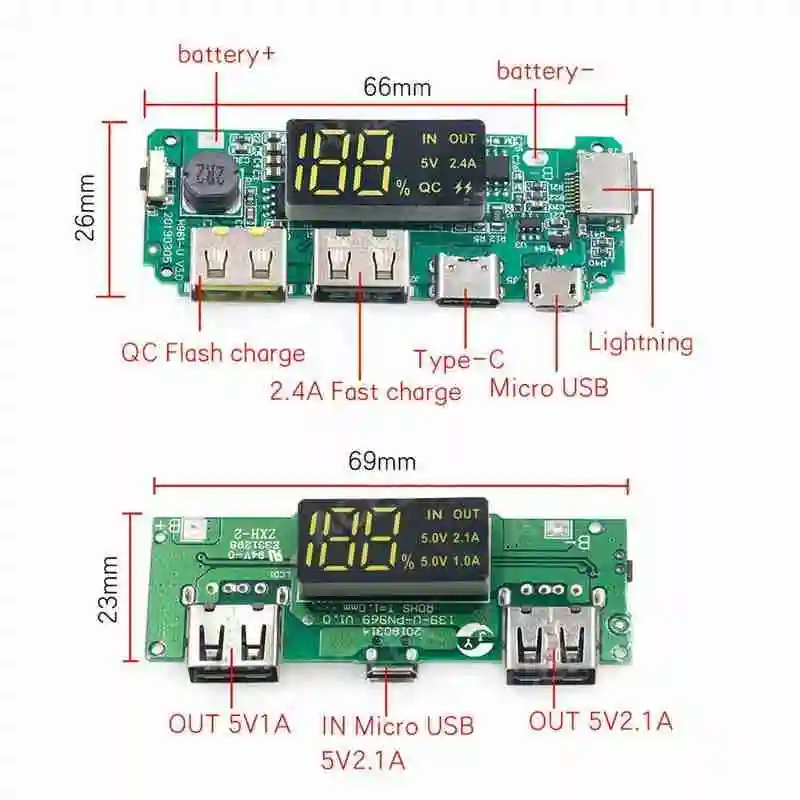 Отзывы о Светодиодный двойной USB 5V 2.4A Micro/Тип с портом типа C мобильный Мощность цепи банк