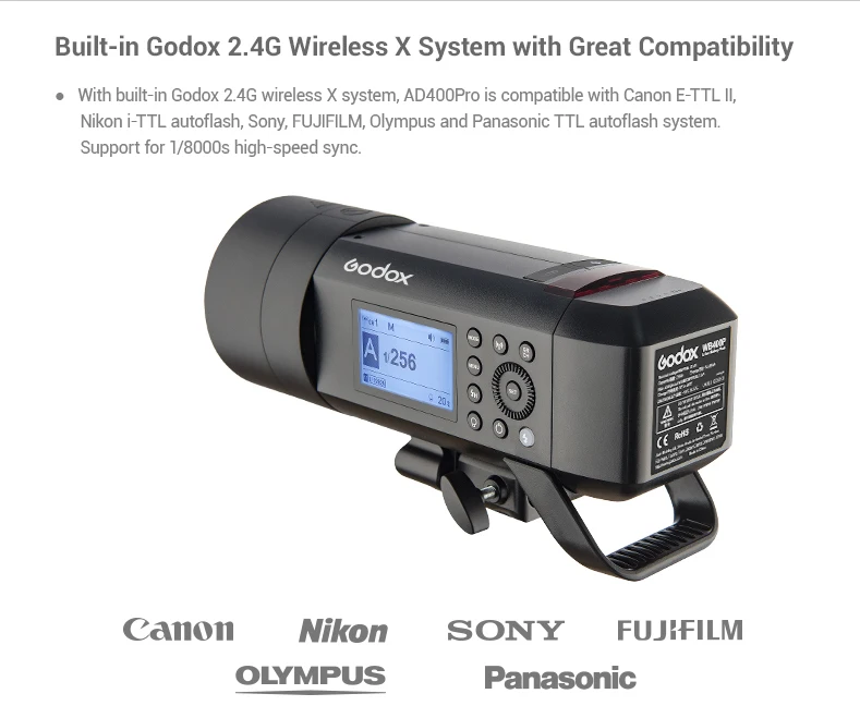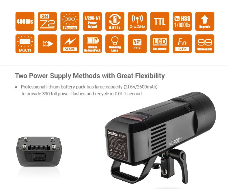 Вспышка уличная Godox AD400Pro AD400 Pro 400ws GN72 TTL с питанием от аккумулятора стробоскоп vs AD200 - купить