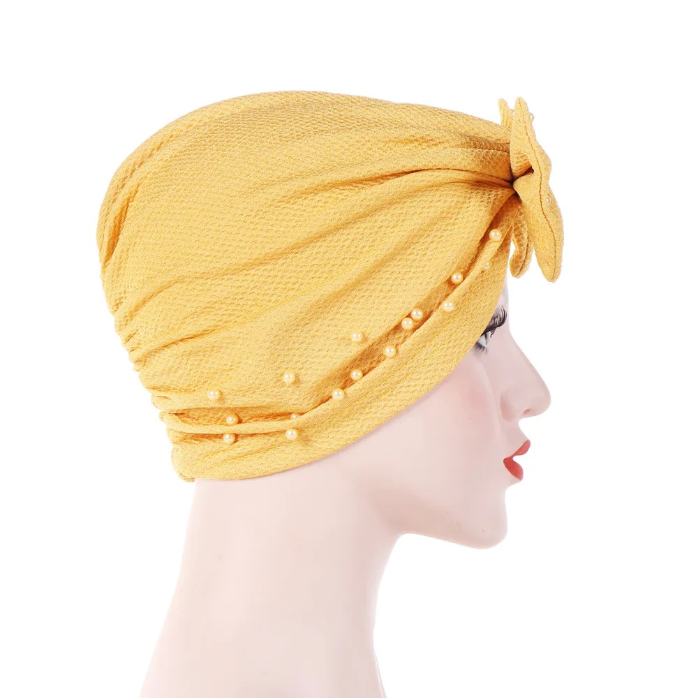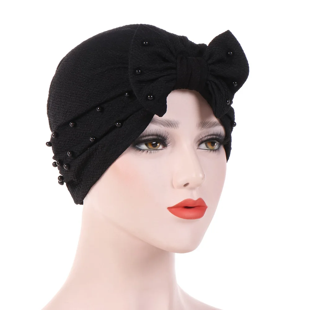 Высокое качество мусульманских женщин стрейч бисера чалма с бантиком головной убор покрытая шапочка при химиотерапии капот хиджаб аксессуары для волос