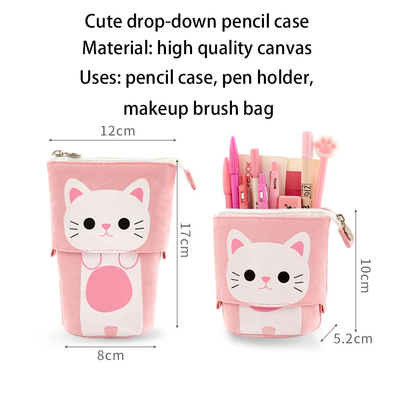 Материал: высокое качество холста Размер: 12 см * 17 см * 8 см Область применения: чехол для карандашей, держатель для ручек, сумка для кистей для макияжа и т. д. Особенности: потяните вниз, чтобы изменить держатель для ручки, дизайн металлической молнии, прозрачный с первого взгляда после вытягивания, внутренний карман с прослойкой, сортировка и сортировка, большая емкость