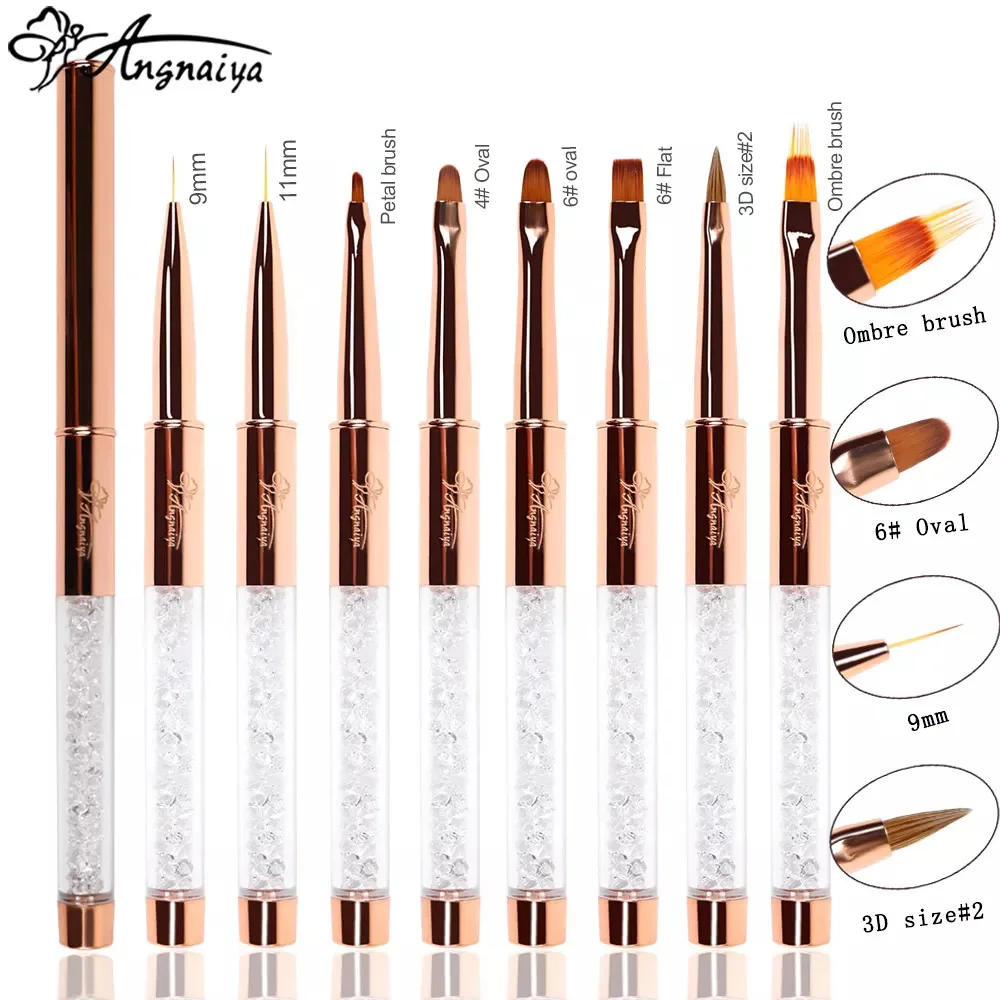 ANGNYA 9Pcs/set Rose Gold Nail Art Uv Gel Brush Set Pen Builder Flat Crystal Painting Drawing Carving Manicure Tool Красота и - купить