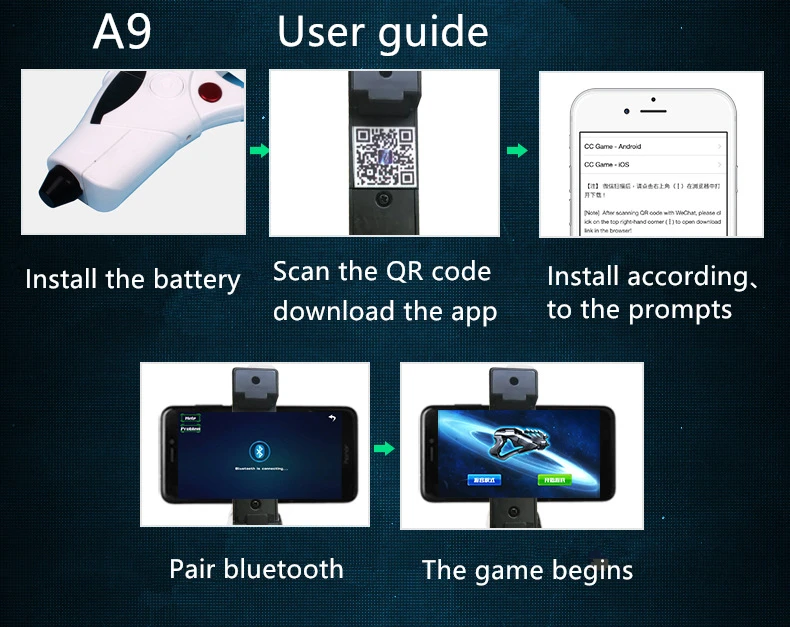 Выберите версию увеличительного стекла, которая может Непосредственно проецировать содержимое мобильный телефон на увеличительное стекло, увеличивая зрение игр, и эффект более реалистичный; Модель A8 поддерживает человека в бою, В то время как модель A9 не поддерживает бой нескольких игроков; AR gun требует двух аккумуляторов No. 7, и аккумуляторы не совпадают, поэтому вы можете легко купить их в продуктовом магазине, если у вас есть какие-либо вопросы, пожалуйста, свяжитесь с нами