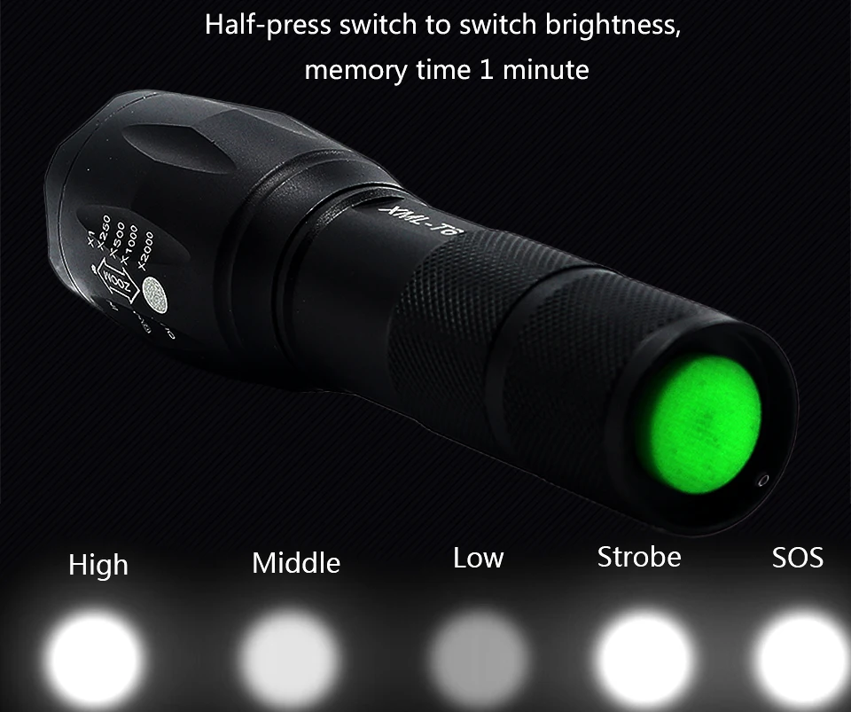 • Режим: 5 режимов (высокий-средний-низкий-SOS-Стробоскоп)