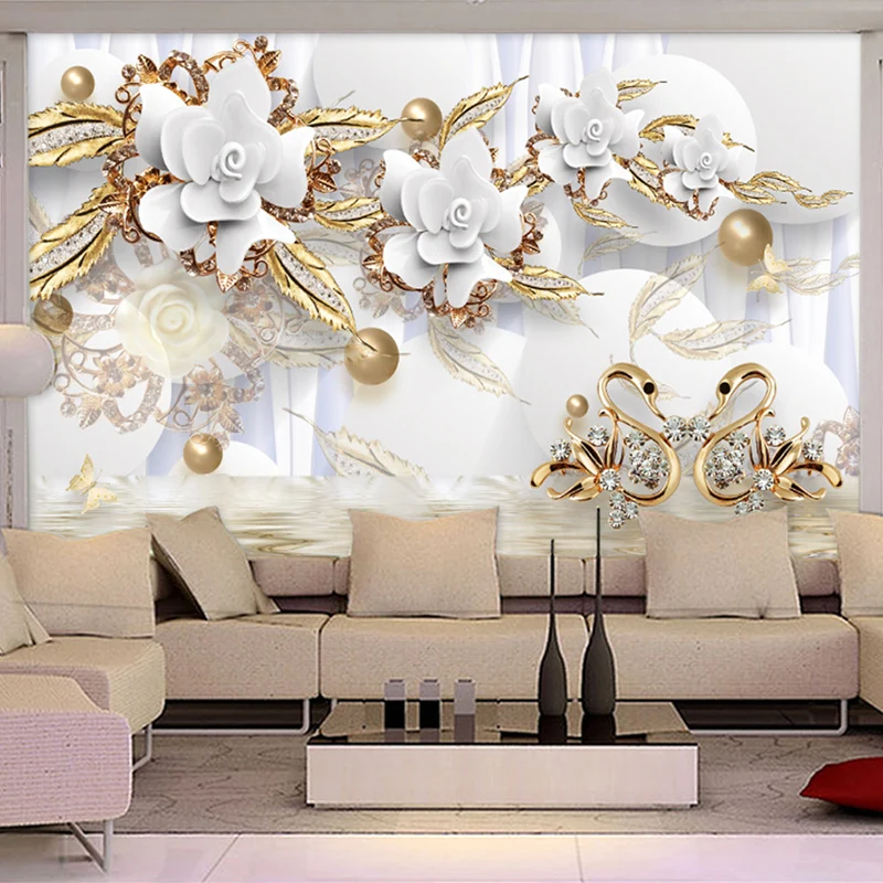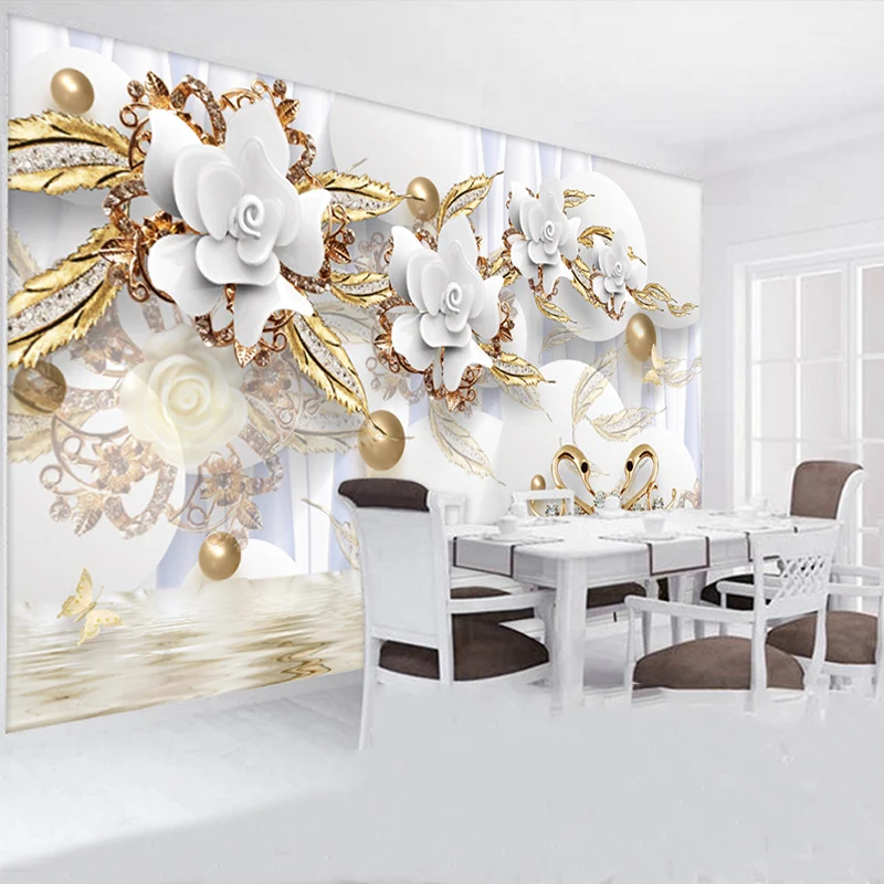 Купить Европейский стиль 3D белые цветы ювелирные изделия Роскошная настенная бумага