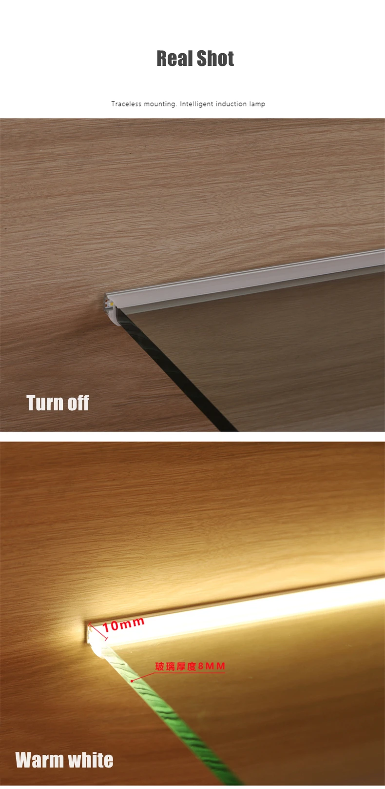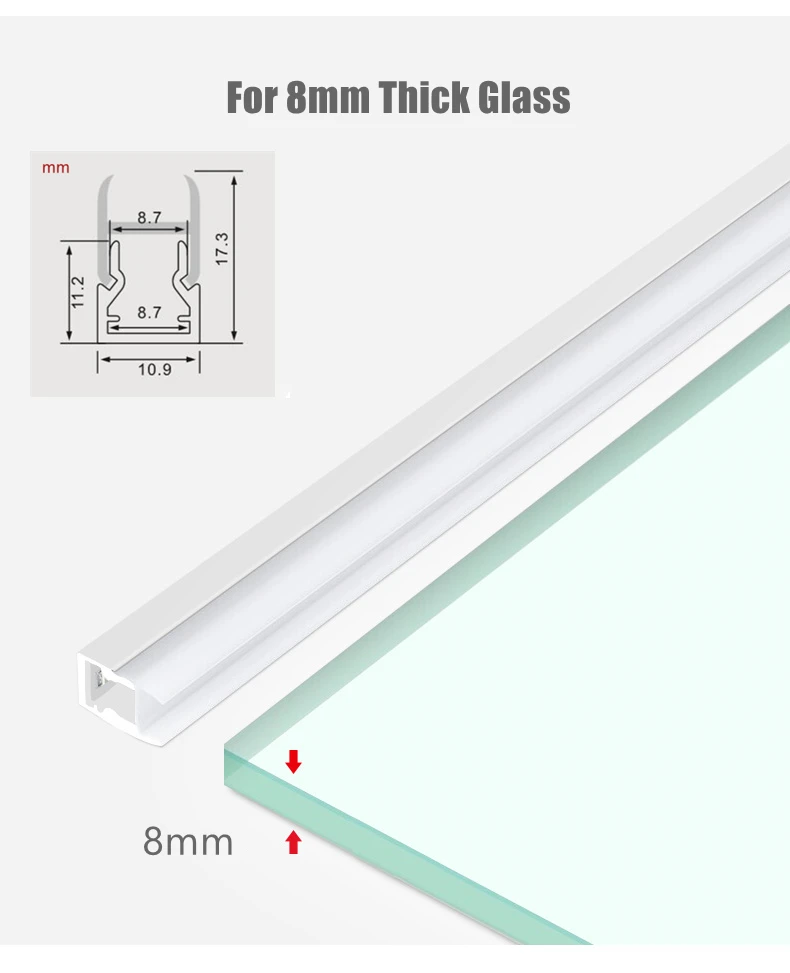 8 мм светодиодный светильник для шкафа, стеклянная полка, шина, зажим, лампа, витрина для ликера, задняя сторона, дисплей, алюминиевая полоса, светильник, датчик затемнения