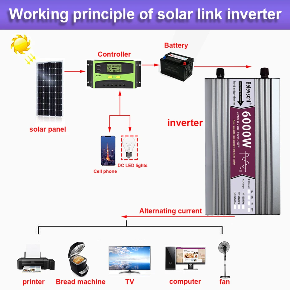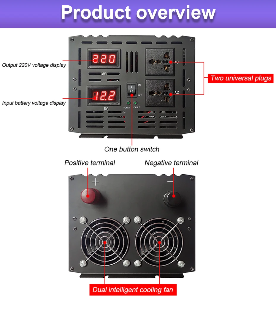 Входное напряжение инвертора 12 В и инвертора 24 В не может быть универсальным. Если выбрано неправильное входное напряжение, инвертор не будет работать. Если вы ничего не понимаете, пожалуйста, свяжитесь со службой поддержки клиентов, мы ответим вам, как только увидим информацию. Спасибо!