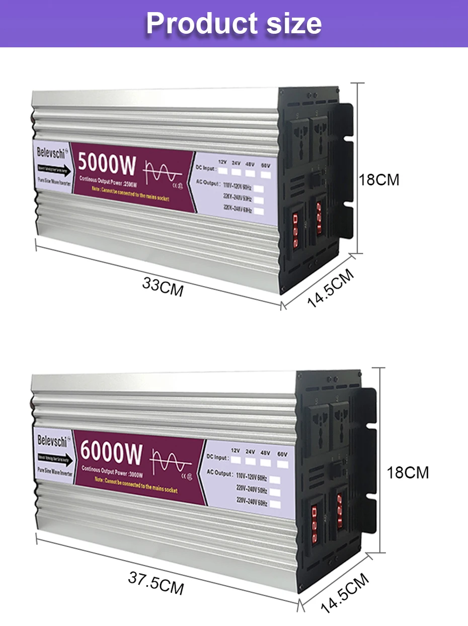 При покупке инверторов вы должны сначала понять напряжение и частоту, используемые в вашей стране/регионе. Приобретайте преобразователь частоты в соответствии с частотой вашей страны/региона. Если у вас есть какие-либо вопросы, пожалуйста, свяжитесь с нами перед покупкой. Большое спасибо!