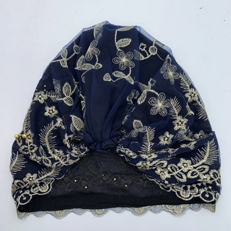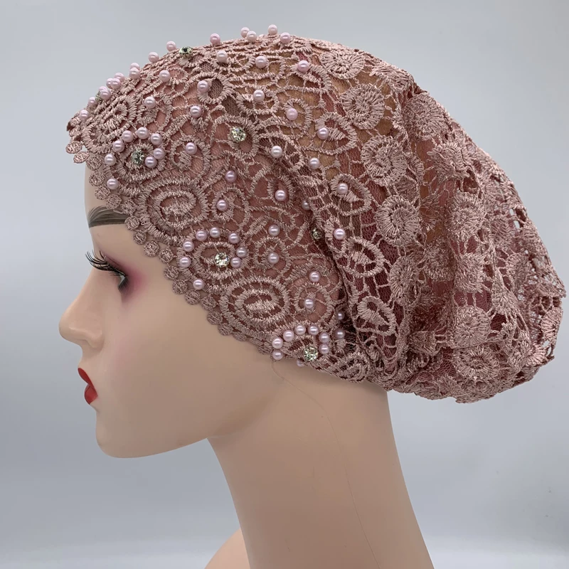 Дышащая кружевная шляпа-тюрбан, украшенная бисером, мусульманский женский головной платок, шляпа, готовая носить внутренние хиджабы, летняя женская шапка-головной убор