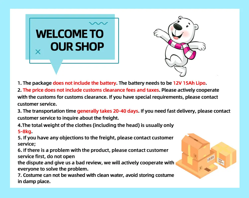 Пожалуйста, знайте: для одного костюма нужна одна батарея (батарея 12 В 5А)