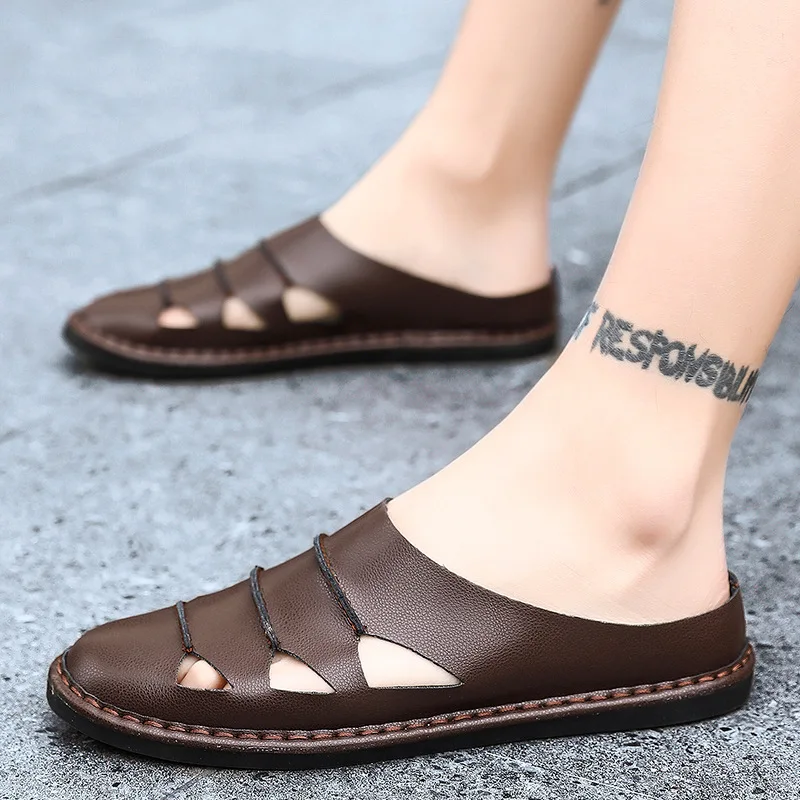 Summer New Style Microfiber Leather Casual Set-on Fashion Sandals for Men Trendy Hollow Breathable Beach Shoes Large Size 48 Обувь - купить