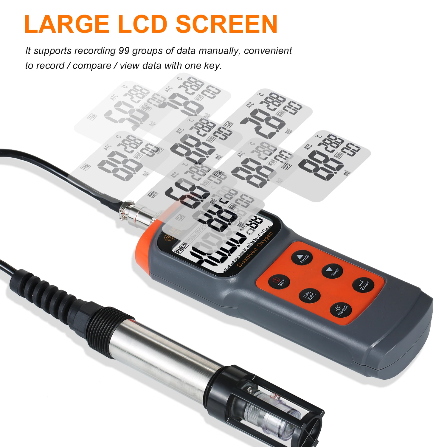 [Большой ЖК-экран] интуитивно понятный ЖК-дисплей с задней светильник, легко читать значения растворенного кислорода и температуры даже в темноте или сильный светильник окружающей среды.